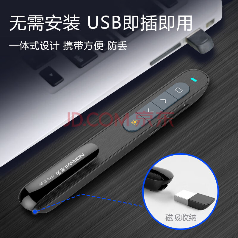 商品相册:诺为N76红光 黑色PPT激光翻页笔 百米遥控充电款教师超链教鞭 360度控制多媒体音量控制遥控笔第