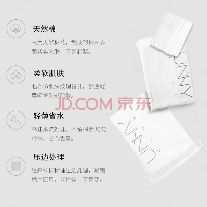 商品相册:悠宜(unny club)卸妆棉200片 不掉棉絮厚片湿敷化妆棉洗脸洁面卸妆水好搭档第