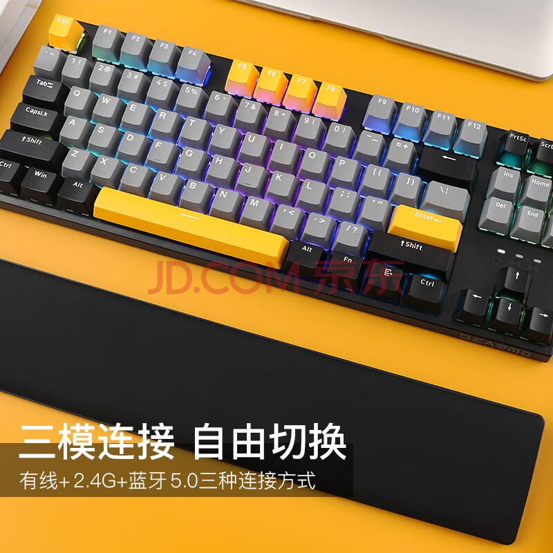 商品相册:迪摩(DEARMO)F87机械键盘三模热插拔客制化键盘RGB背光游戏键盘笔记本电脑办公键盘 黑金版 黑轴第
