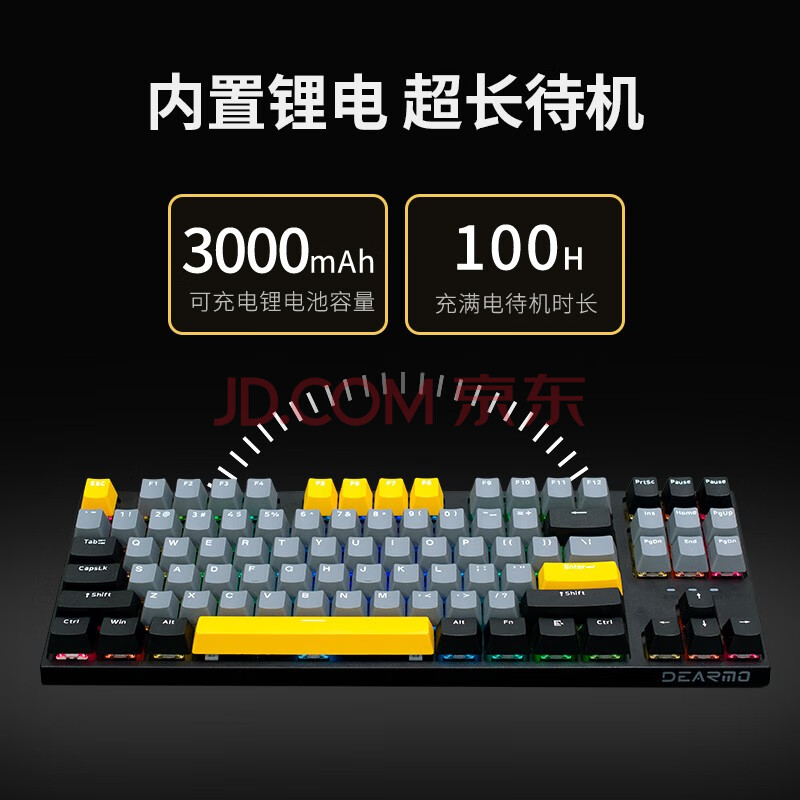 商品相册:迪摩(DEARMO)F87机械键盘三模热插拔客制化键盘RGB背光游戏键盘笔记本电脑办公键盘 黑金版 青轴第