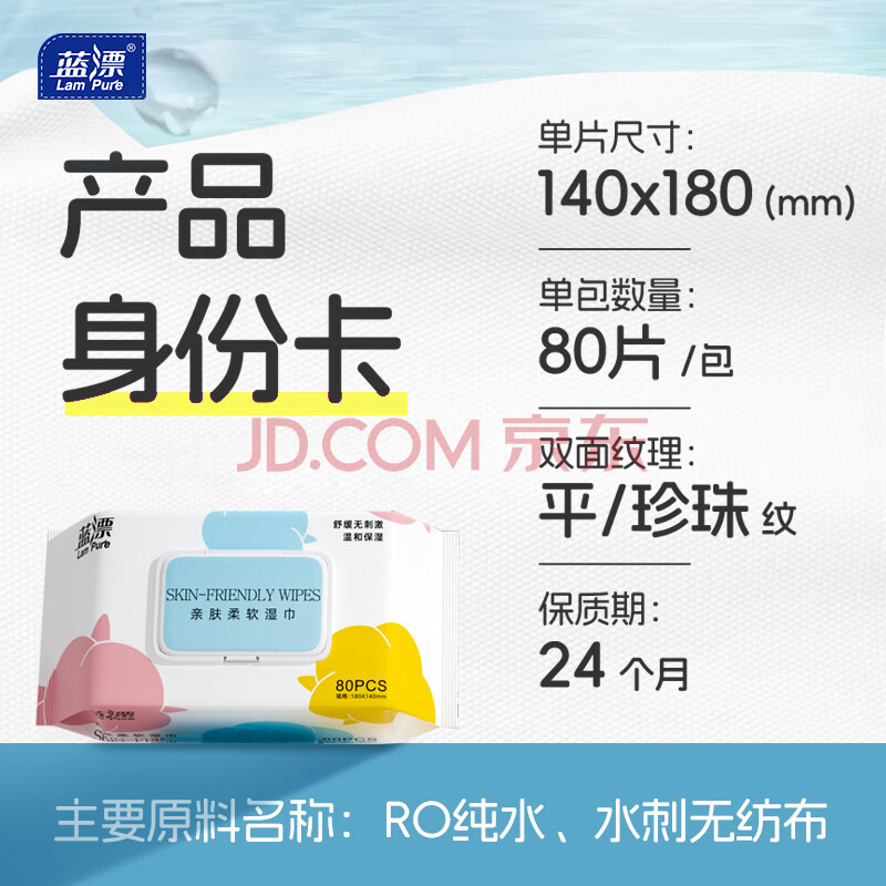 商品相册:蓝漂湿巾RO纯水80抽*12包洁肤柔湿巾湿巾湿用擦脸巾源头直发包邮第