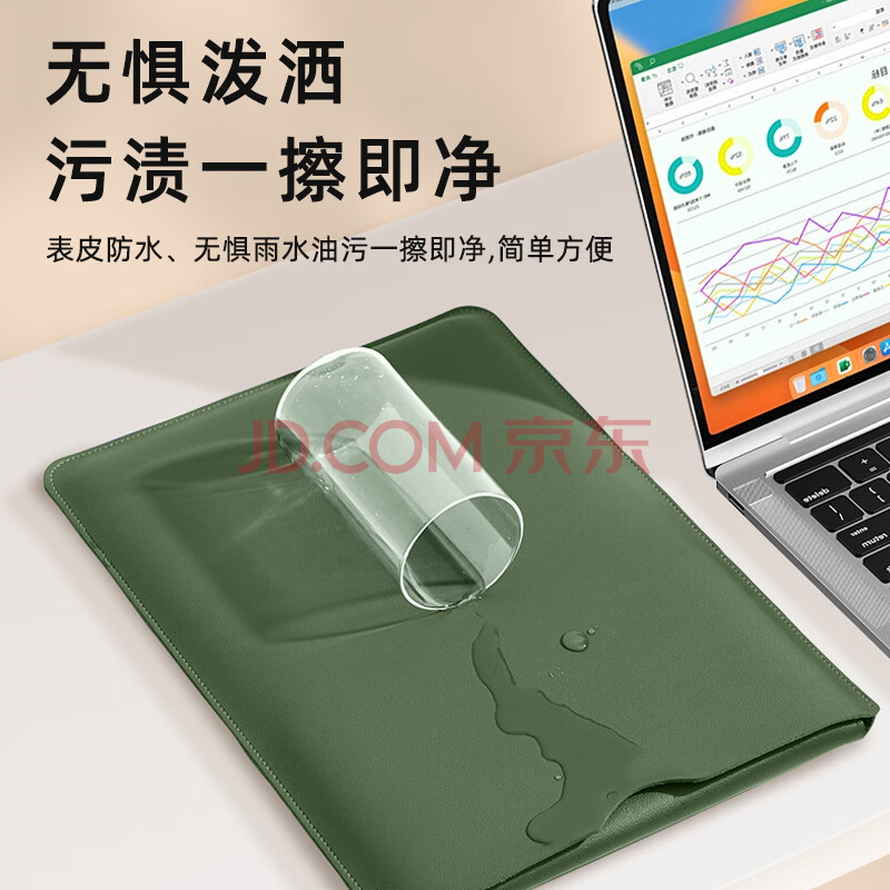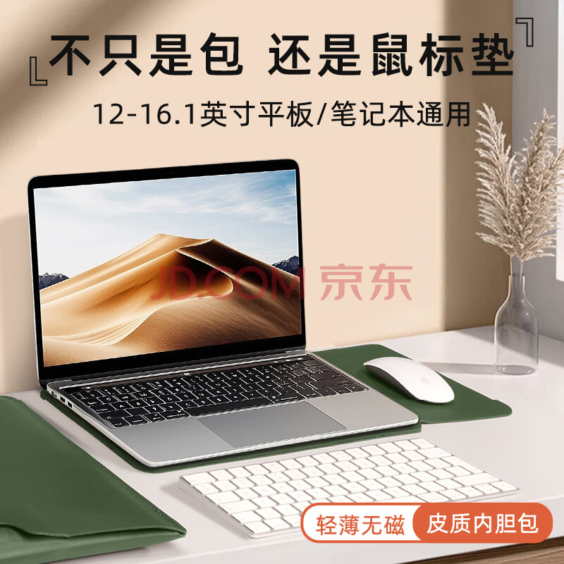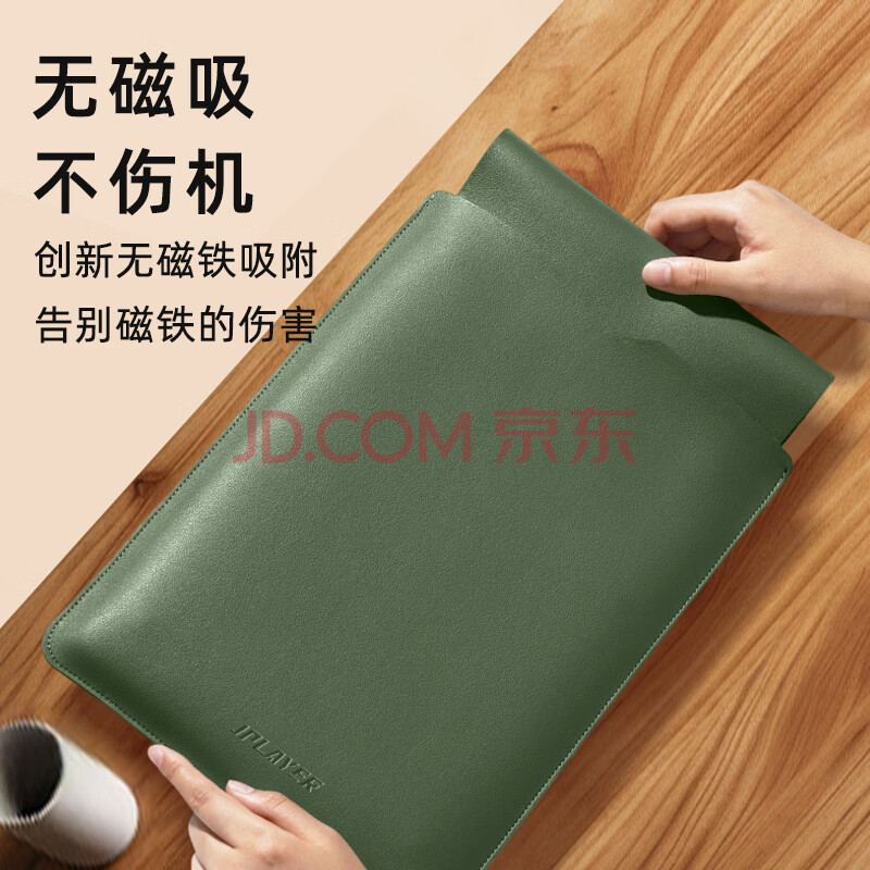 商品相册:JPLAYER笔记本电脑内胆包适用于联想小米华为苹果macbook14-15英寸简约轻薄皮质电脑保护包 墨绿第
