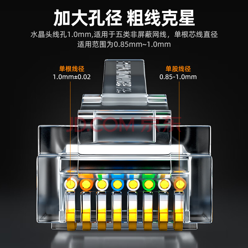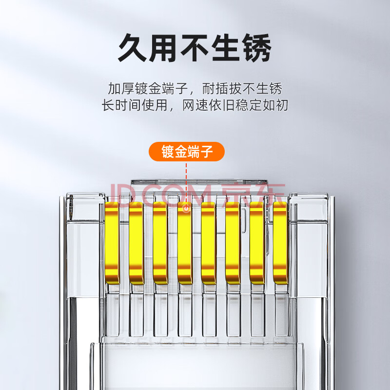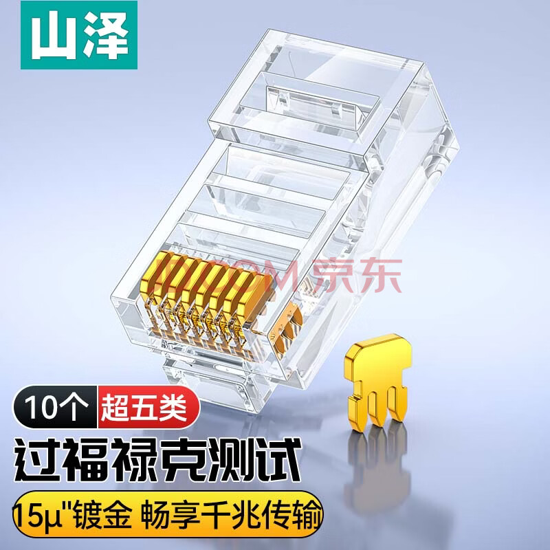 商品相册:山泽 超五类工程级水晶头 超5类千兆网线接头 Cat5e电脑网络连接头 15U镀金网线水晶头 10个 SJ-P010第