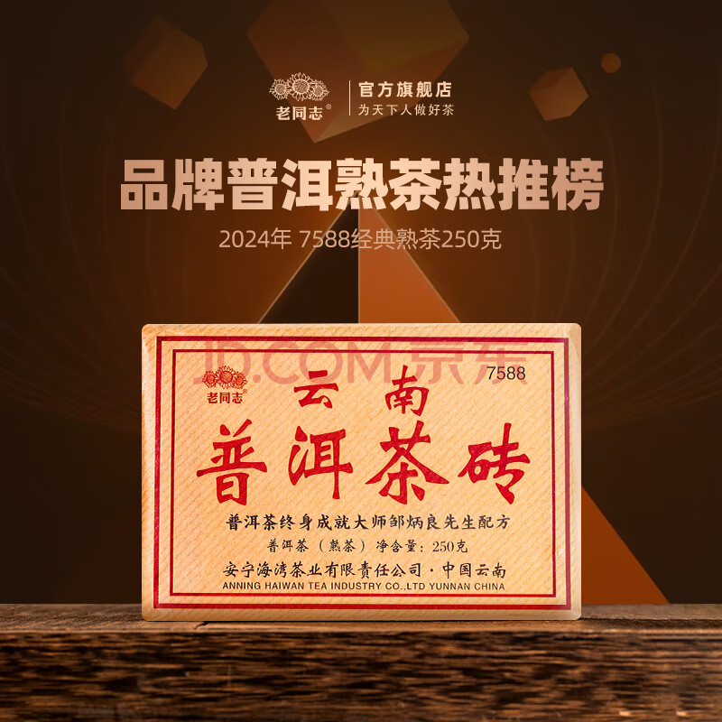 商品相册:老同志茶叶普洱茶熟茶2025年7588茶砖250克*4经典口粮茶第