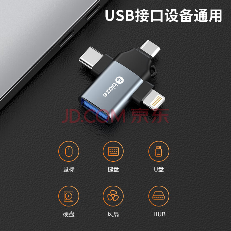 商品相册:毕亚兹 OTG转接头 三合一读卡器苹果/Type-C/安卓手机外接u盘USB转换器适用iphone16连接相机/键鼠 P39第