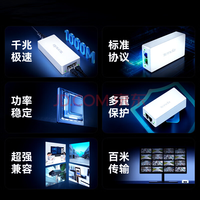 商品相册:Tenda腾达千兆POE供电模块 电源供电器 适配器 AP无线网桥监控摄像头网线供电 48V标准at/af PoE30G-AT第
