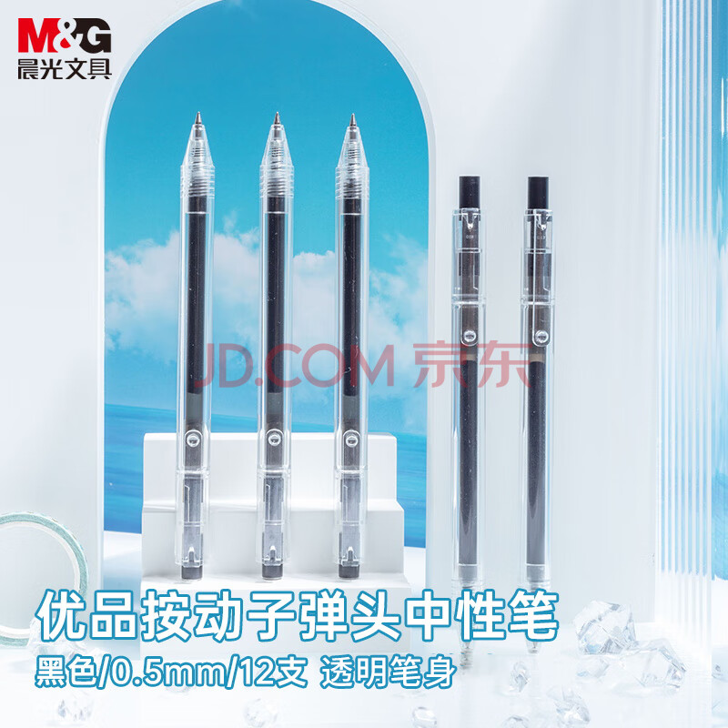 商品相册:晨光(M&G)文具 按动中性笔0.5学生黑笔签字笔商务子弹头水笔办公用品 黑色 12支/盒第