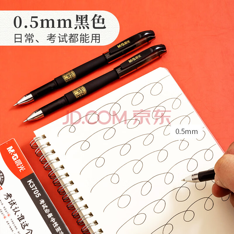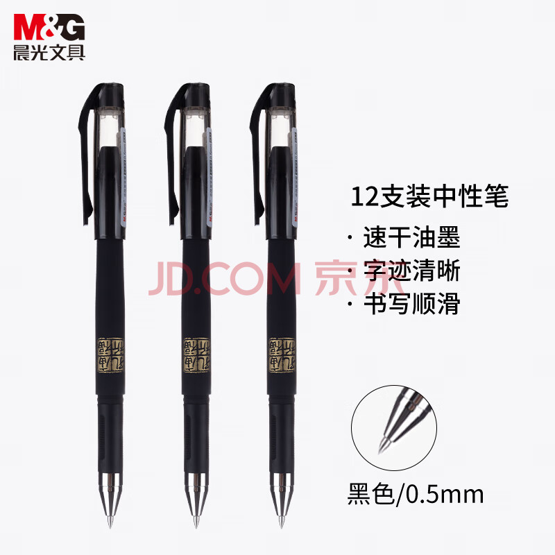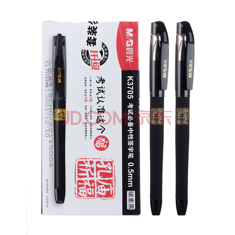 商品相册:晨光(M&G)文具黑色中性笔0.5 孔庙祈福考试专用签字笔 拔盖子弹头学生期末刷题水笔 12支/盒AGPK3705考试第