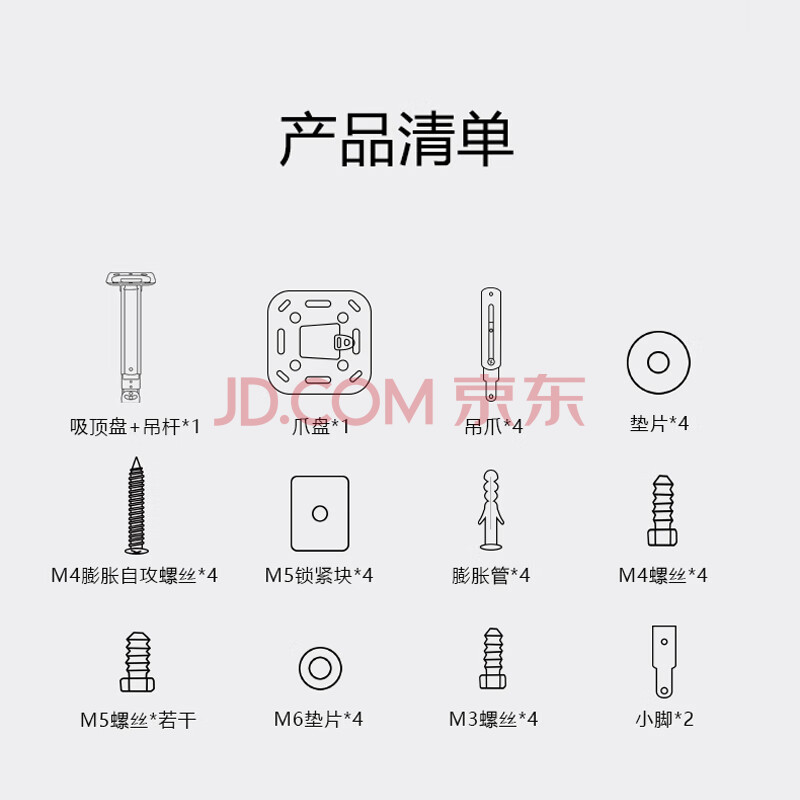 商品相册:鲸米(JINGMI)投影仪吊架H600吊装壁挂支架伸缩长度40-60CM适配三/四孔投影机多功能投影吊架第