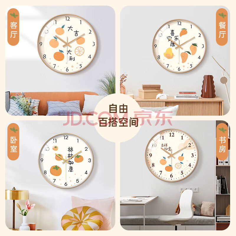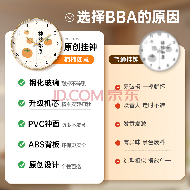 商品相册:BBA挂钟吉祥小清新客厅家用柿柿如意新中式创意装饰钟表挂墙30cm第