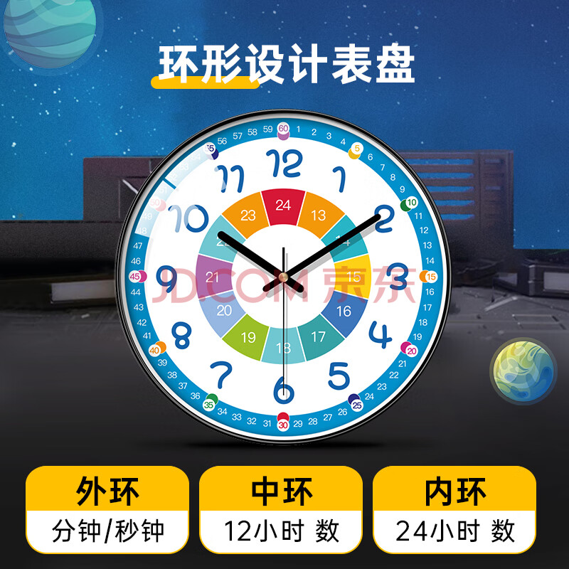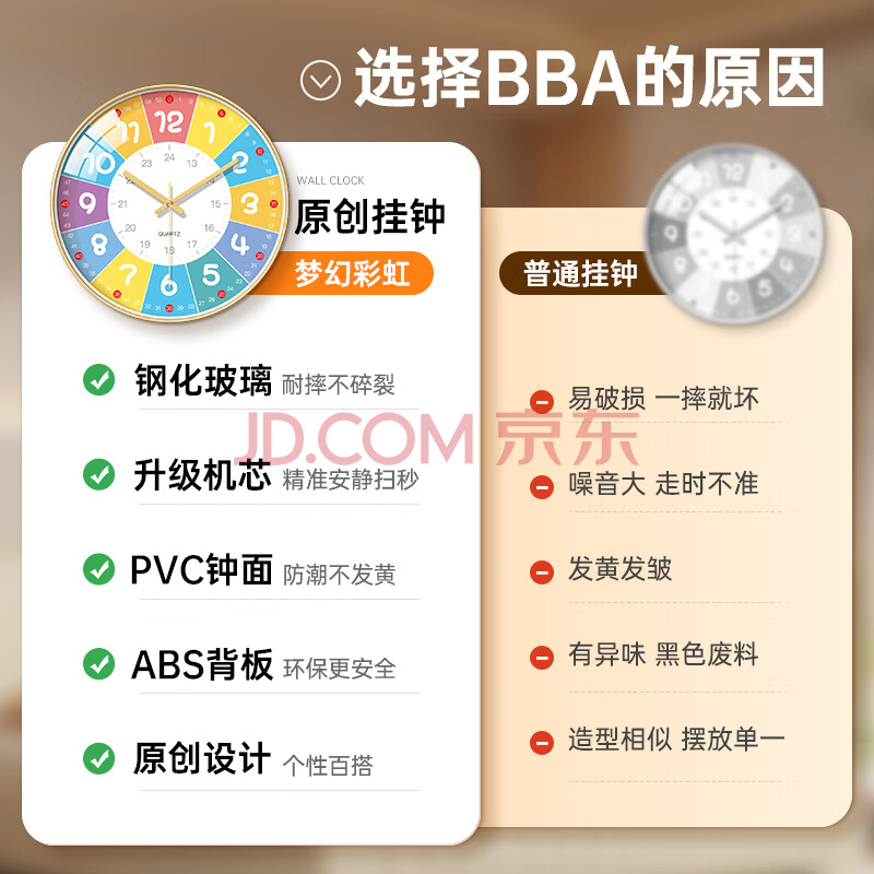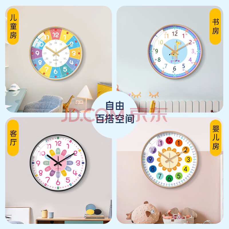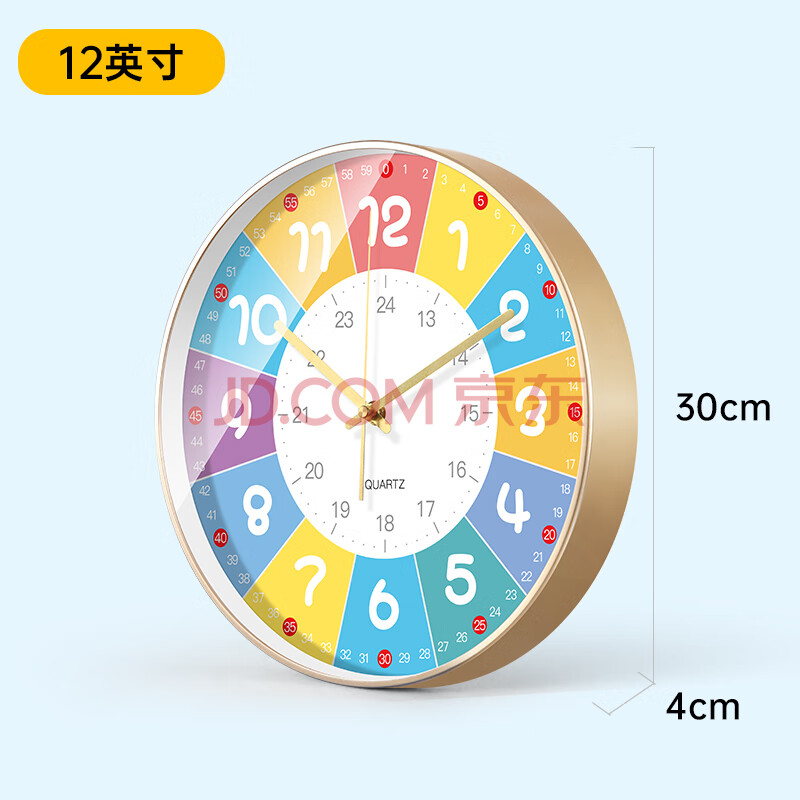 商品相册:BBA 挂钟儿童房早教学习卡通钟表家用卧室教室创意时钟 30cm香槟金第