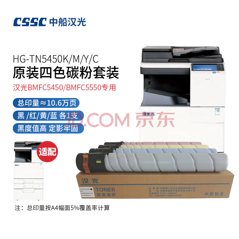 商品相册:中船汉光 TN5450KMYC 原装4色墨粉盒/碳粉盒套装(适用汉光BMFC5450/BMFC5550复合机)第