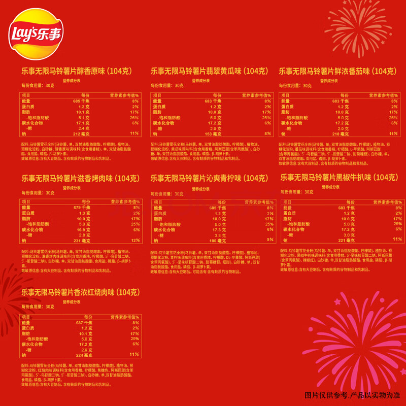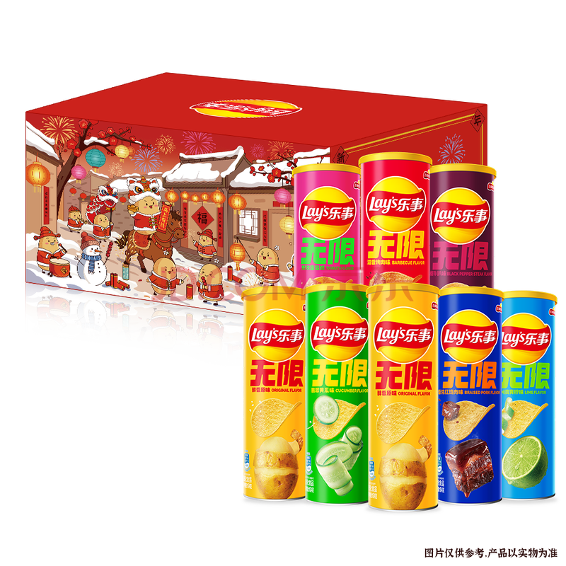 商品相册:乐事(Lay's)薯片 游园乐事礼盒832g 104g*8罐 休闲零食 罐装薯片 礼盒第1张/共7