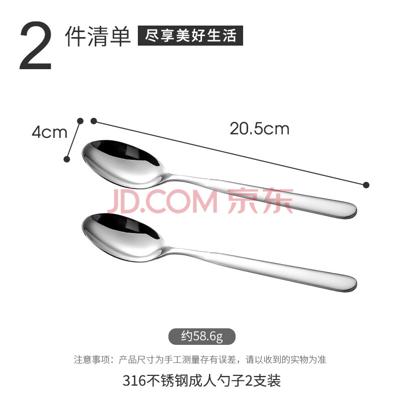 商品相册:广意316L不锈钢勺子 家用汤勺调羹汤匙 成人吃饭勺子2支装GY7899第