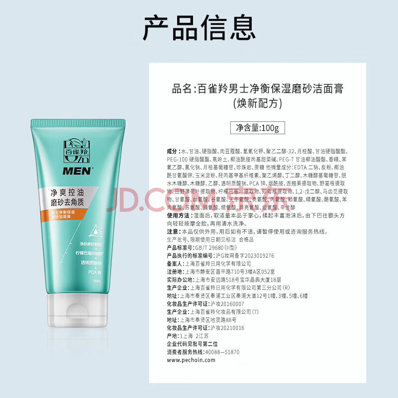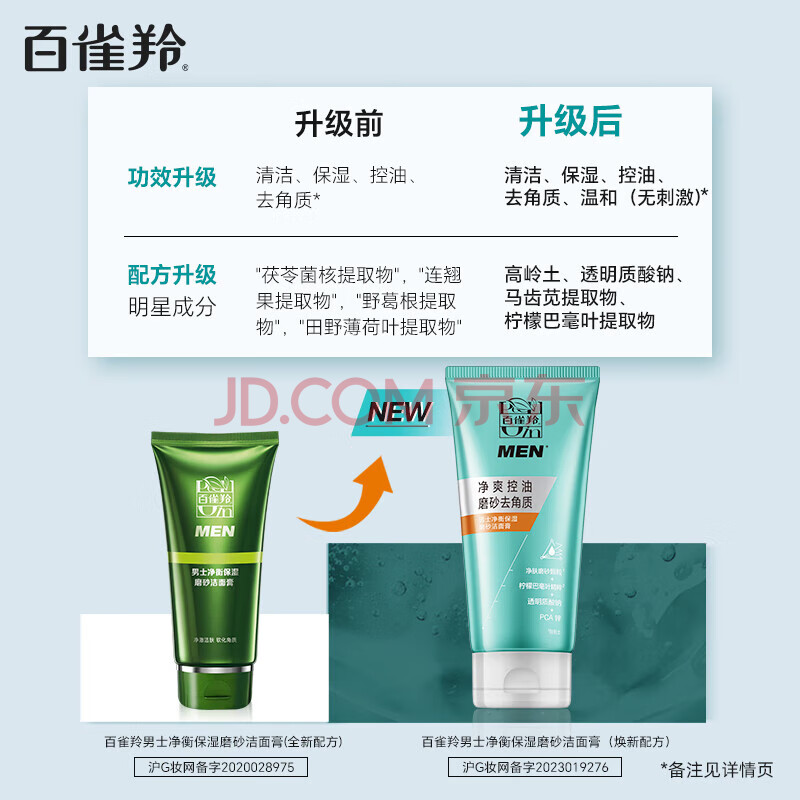 商品相册:百雀羚洗面奶男士护肤品去角质净衡清洁控油保湿洁面膏100g女神节礼物第