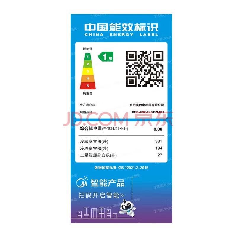 商品相册:美的(Midea)602升对开门冰箱变频一级能效家用无霜冰箱玻璃面板发升级款BCD-602WKGPZM(E)【600下市】第