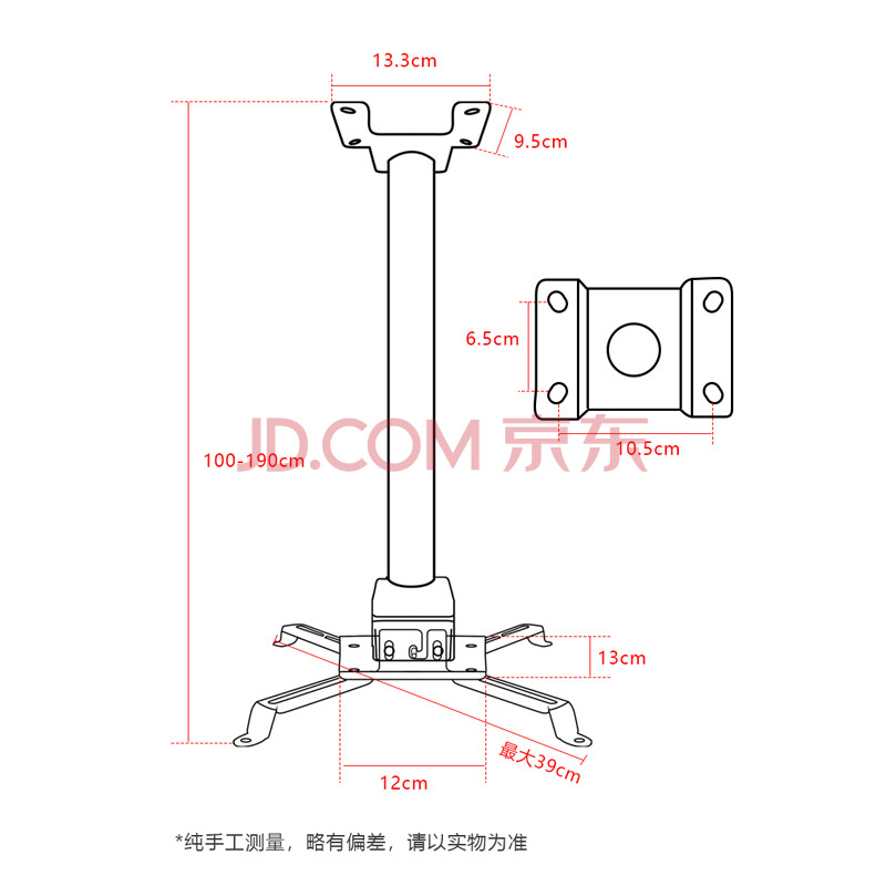 商品相册:鲸米(JINGMI)投影仪吊架投影机支架DC200通用吊架2米伸缩100-190CM白色办公家用适爱普生明基松下优派索尼第