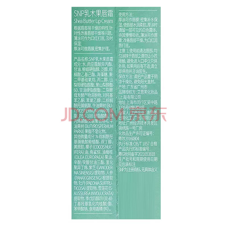 商品相册:SNP唇膏乳木果唇霜10g(补水、保湿滋润、改善唇纹、防干裂)护肤品第