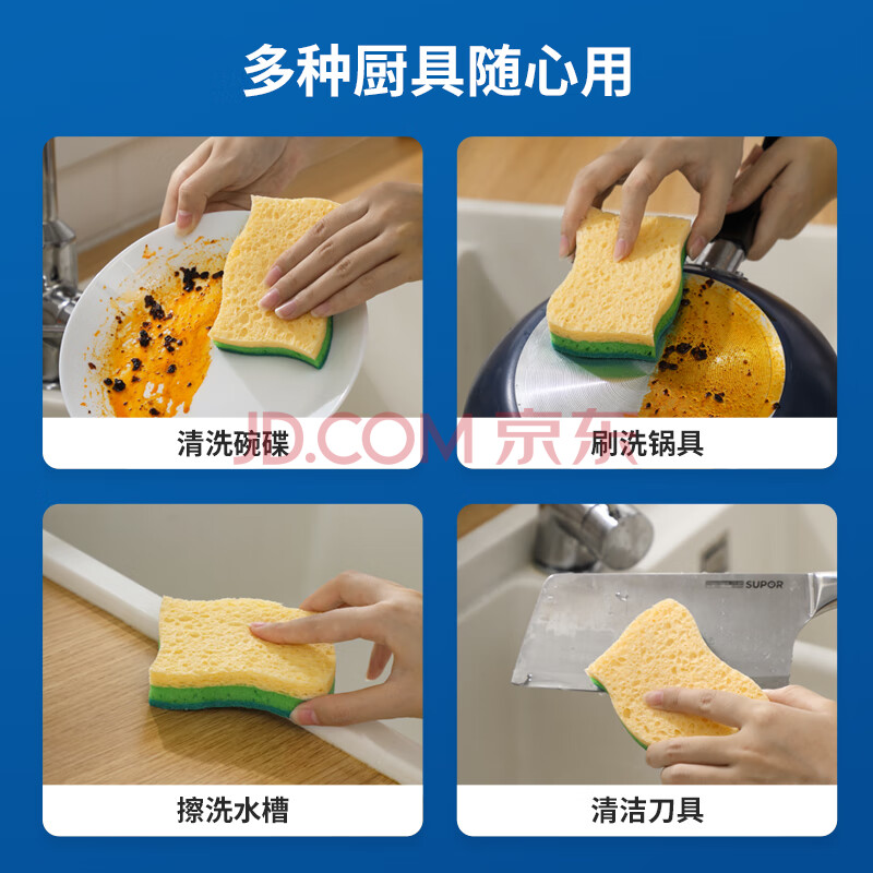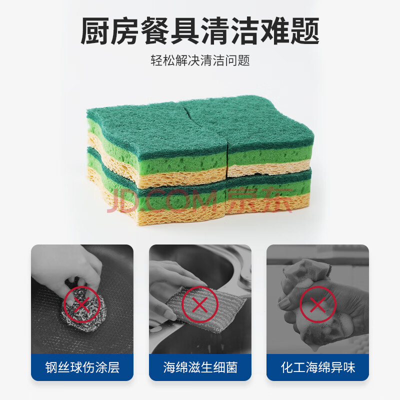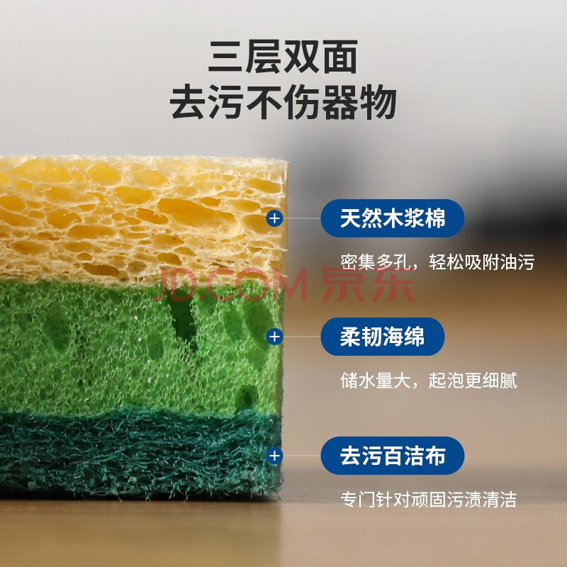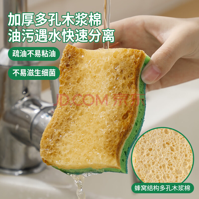 商品相册:LYNN 天然木浆棉百洁布抹布4片 双面双效洗碗巾去油污海绵擦第