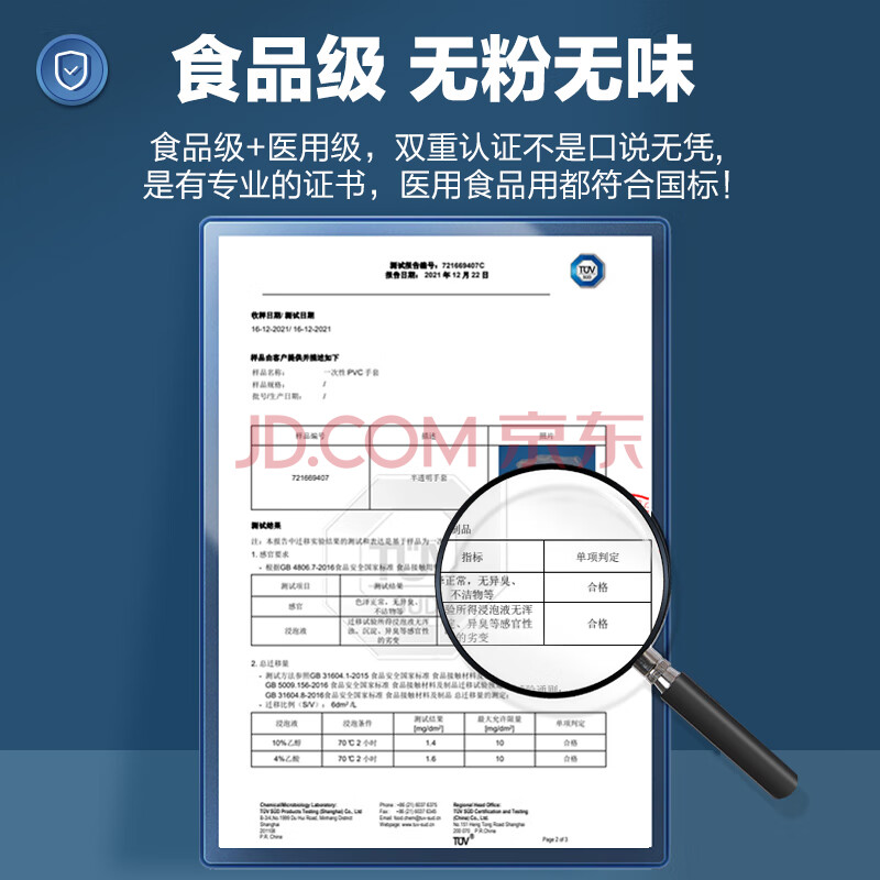 商品相册:可孚一次性医用手套100只pvc食品级橡胶手套透明加厚防护指套家用S码第