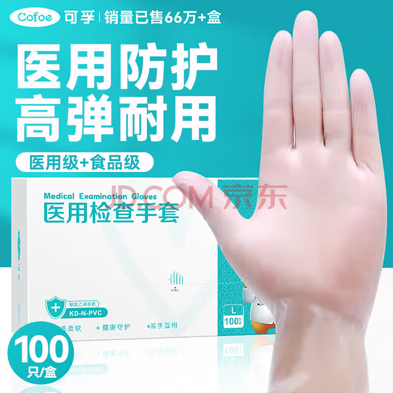商品相册:可孚医用检查手套一次性手套PVC手套 清洁洗碗家务食品级手套M码100只第