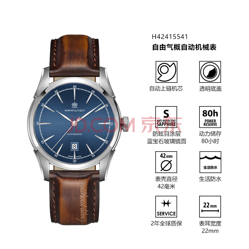 商品相册:汉米尔顿(Hamilton)经典自由气概42蓝盘皮带男士腕表瑞士手表机械表男商务表男士礼物第