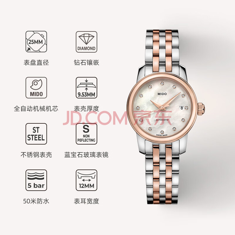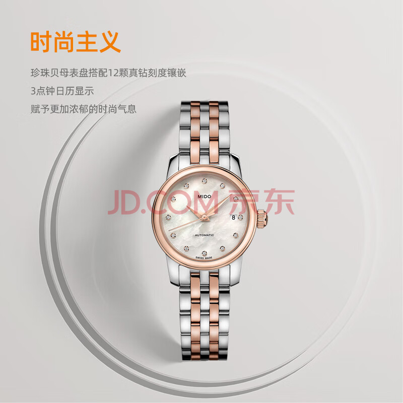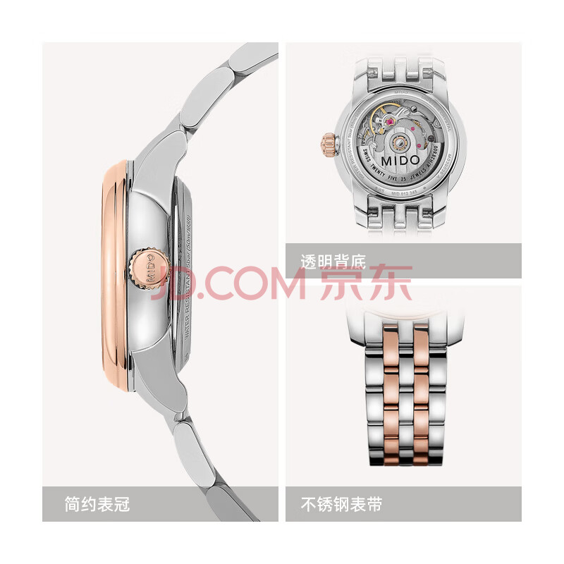 商品相册:美度(MIDO)瑞士手表 贝伦赛丽系列 迷你小表盘 时尚优雅 机械钢带女表第