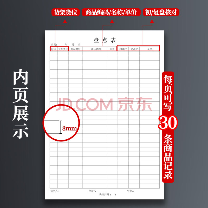 商品相册:嘉然恒 5本装A4大号盘点表库存明细登记本产品出入库统计表商品销售采购进出入库房记录本月报表第
