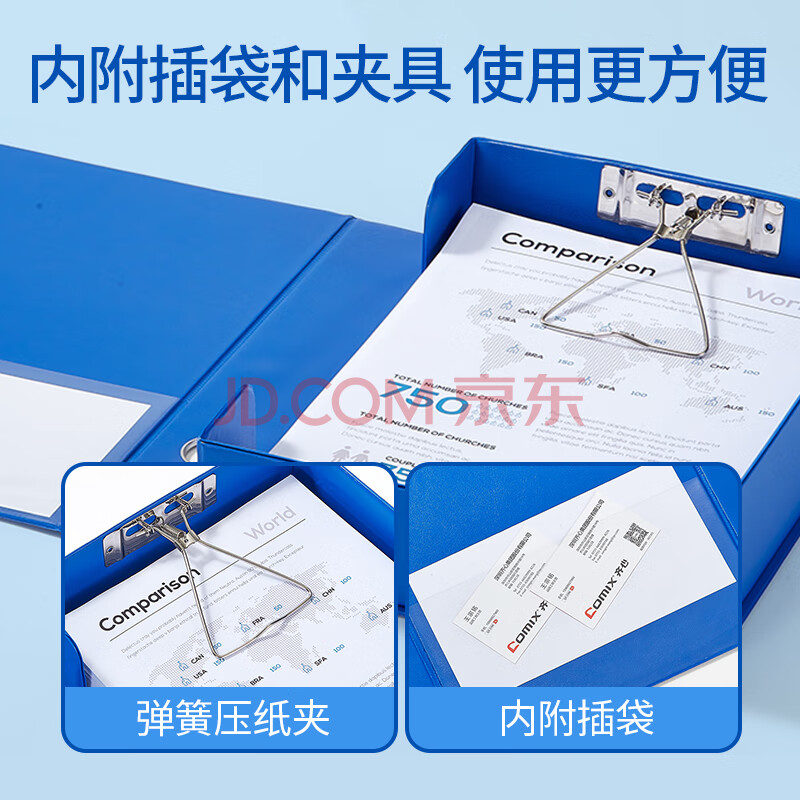 商品相册:齐心(COMIX)68mmA4磁扣式文件盒加厚pvc档案盒55mm容纸量资料盒财务票据收纳(带压纸夹) 蓝色EA1013第