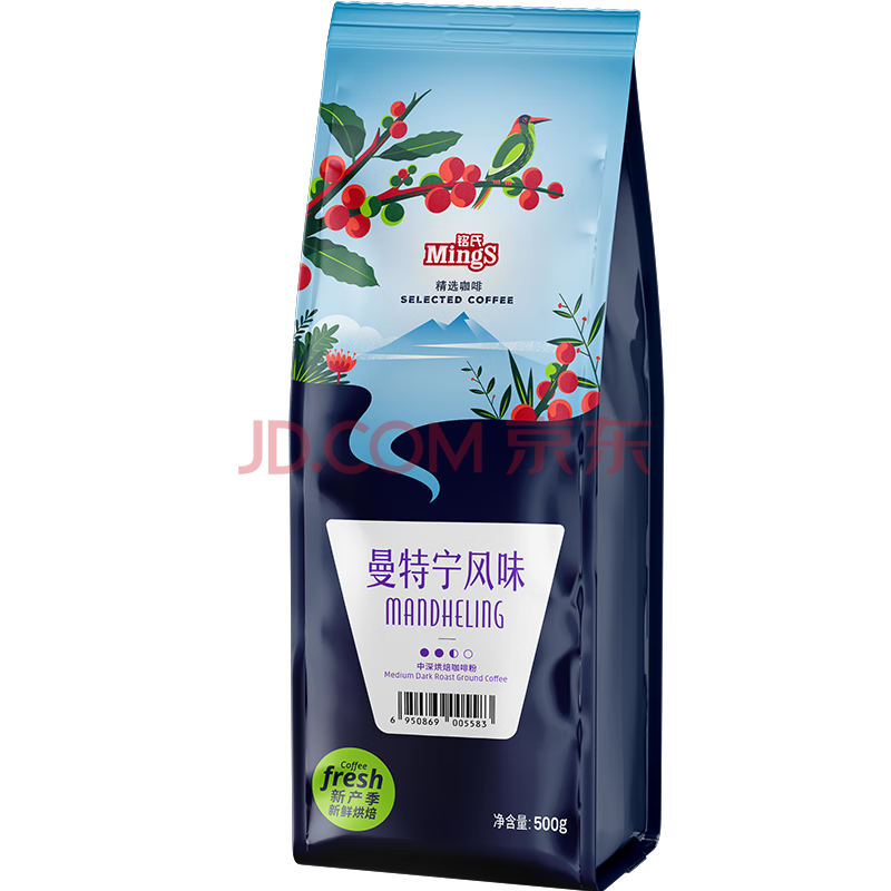 商品相册:铭氏(Ming's)曼特宁咖啡豆 磨粉 低酸香甜阿拉比卡豆研磨黑咖啡500g 中深烘焙第