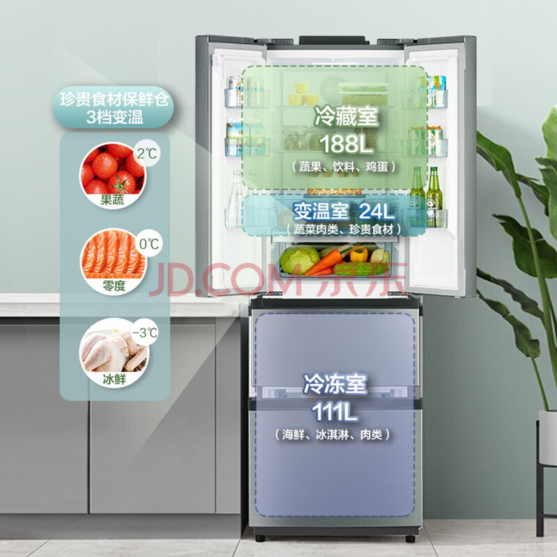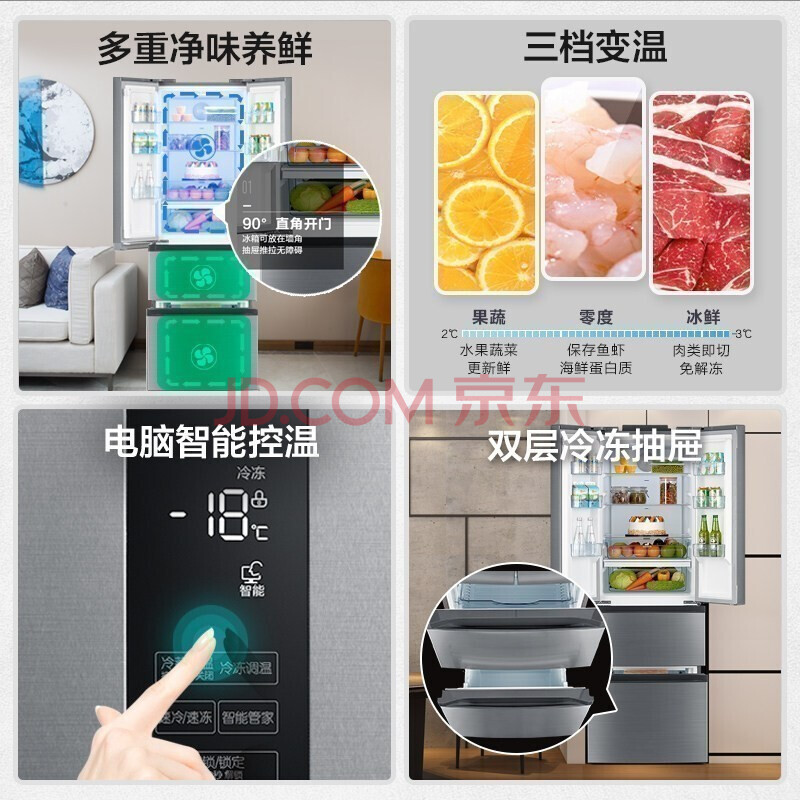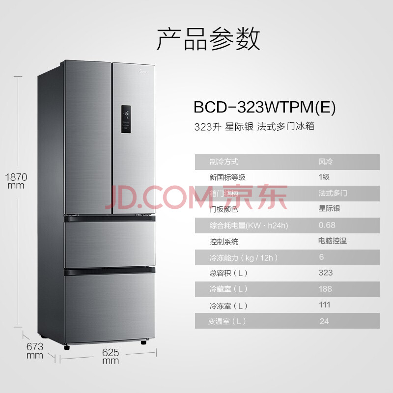商品相册:美的(Midea)323升一级能效变频多门双开门风冷无霜超薄四开门电冰箱BCD-323WTPM(E)第