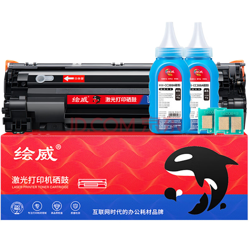 商品相册:绘威CC388A 88A易加粉硒鼓+2支碳粉 适用惠普HP388a P1106 P1108 M126nw M1136 M1213nf 1216nfh M1218墨盒第