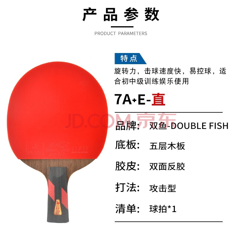 商品相册:双鱼 七星乒乓球拍直拍球拍(附2球/京仓速发)7A+E直拍单拍第