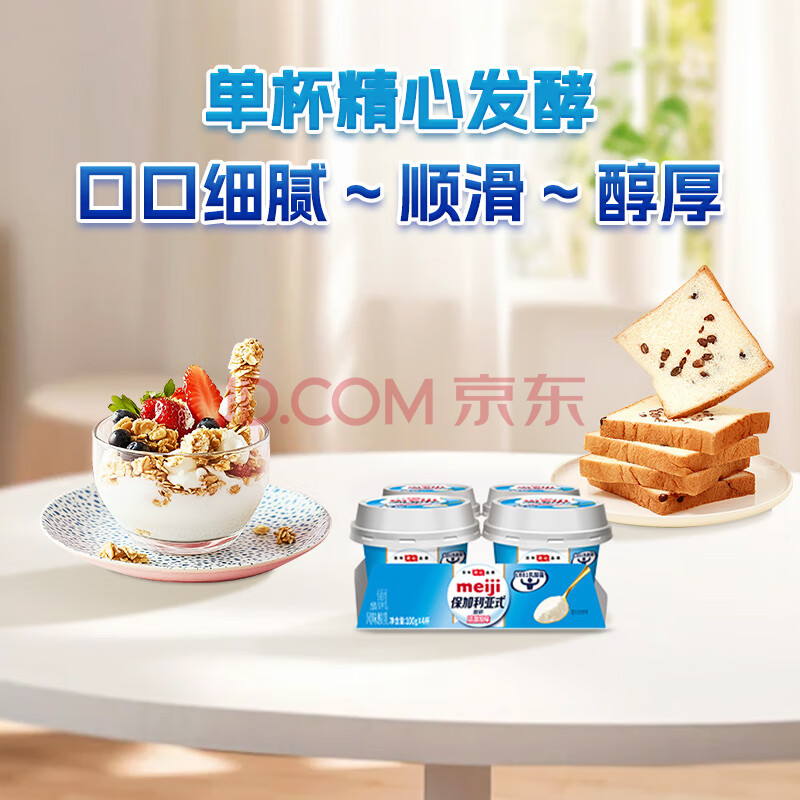 商品相册:明治meiji【国内奶源】保加利亚式酸奶 清甜原味100g×4杯 特选LB81乳酸菌第
