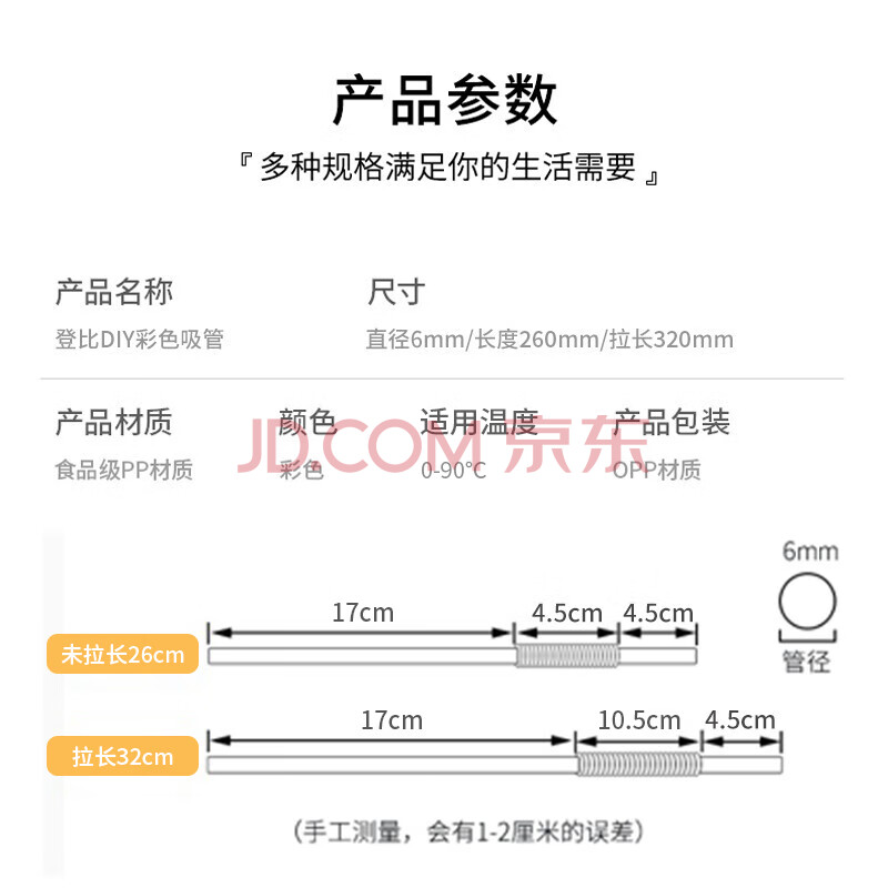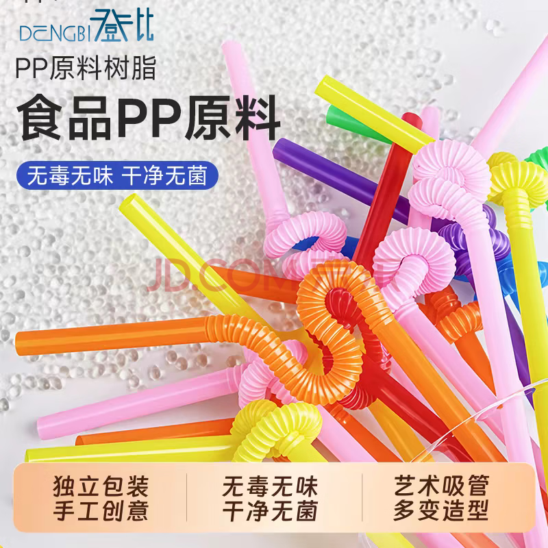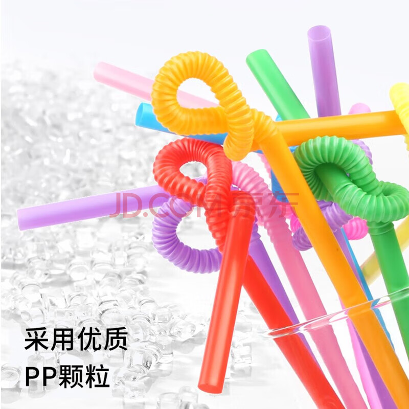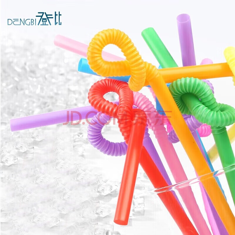 商品相册:登比 食品级吸管一次性200支独立装弯头宝宝吸管果汁饮料彩色艺术吸管第