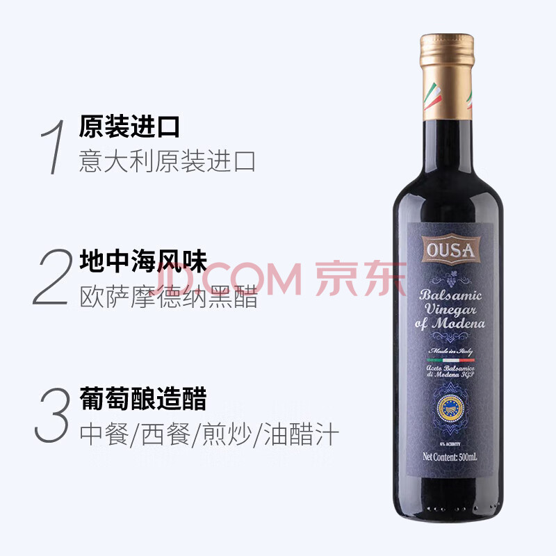 商品相册:欧萨意大利进口 摩德纳黑醋500ml 葡萄酒酿造水果醋 沙拉西餐调味汁第