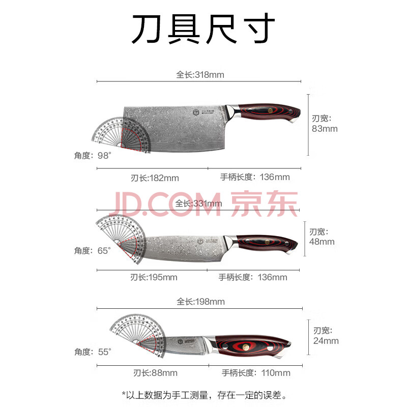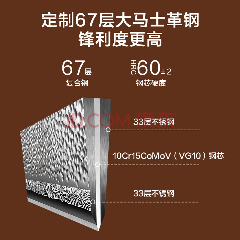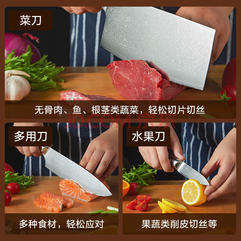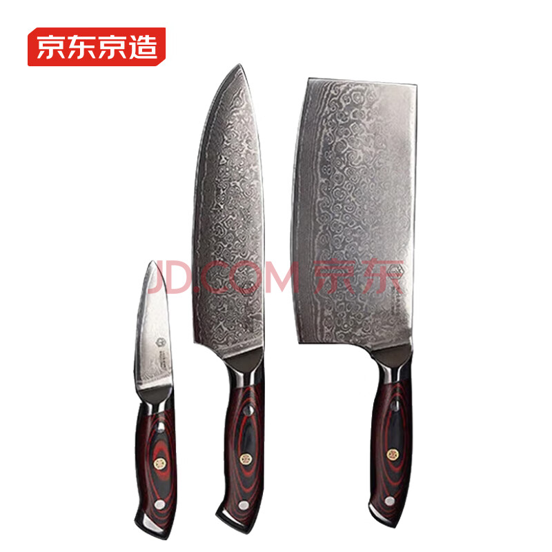 商品相册:京东京造 刀具全套67层大马士革10铬钢芯主厨礼盒刀具套装菜刀厨师刀水果刀 3件套第