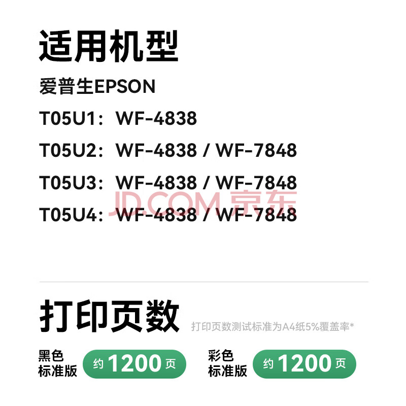 商品相册:彩格适用爱普生T05U墨盒 爱普生WF-4838墨盒 Epson打印机 WF-7848 WF-7318墨盒墨水 T05U1+U2+U3+U4四色套装第