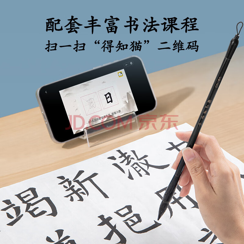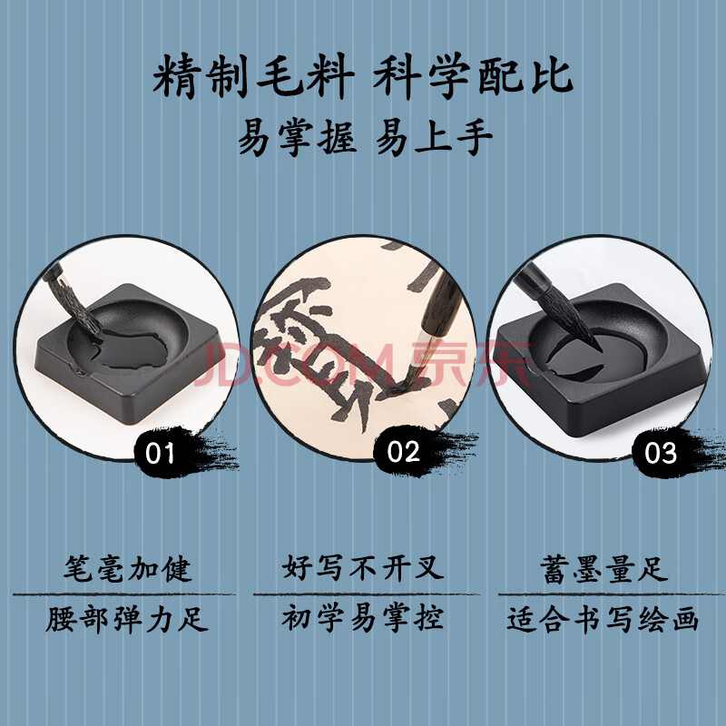 商品相册:得力(deli)文房四宝毛笔书法套装 (兼毫毛笔/50ml墨汁/水碗) 练字楷书国画绘画成人初学者启蒙款礼物开学用品第