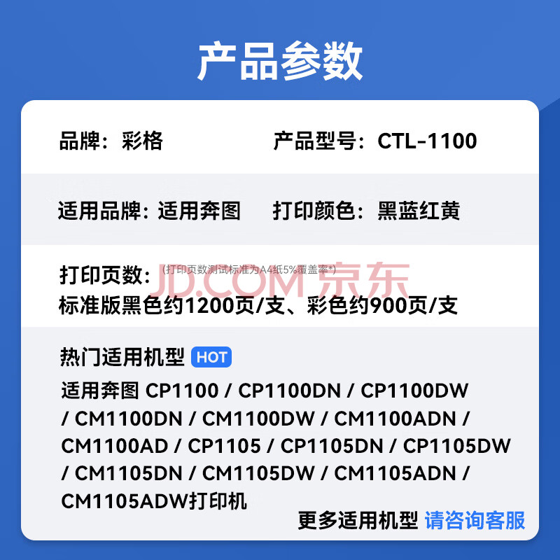 商品相册:彩格CTL-1100粉盒适用奔图CP1100DN硒鼓CM1100DN/ADN/DW/ADW CP1100DW CP1100 CP1105DN打印机墨盒四色标准版第
