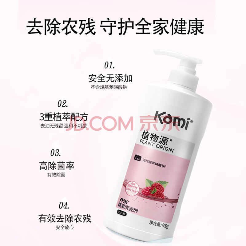 商品相册:开米蔬果清洗剂800g*单瓶果香洗洁精果蔬净植萃配方除菌去农残专用第