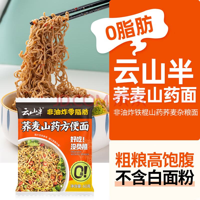商品相册:云山半 荞麦山药方便面60g*10包 0脂肪非油炸 荞麦面条挂面泡面代餐拌面第