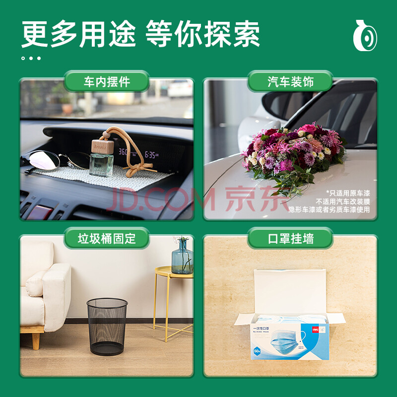 商品相册:得力(deli)强力纳米胶带无痕双面胶透明胶 30mm*5m 升级防尘泡壳 对联春联专用 水洗可重复使用 1卷 33612第