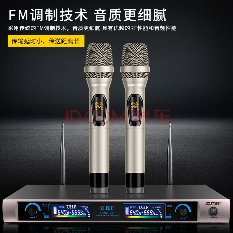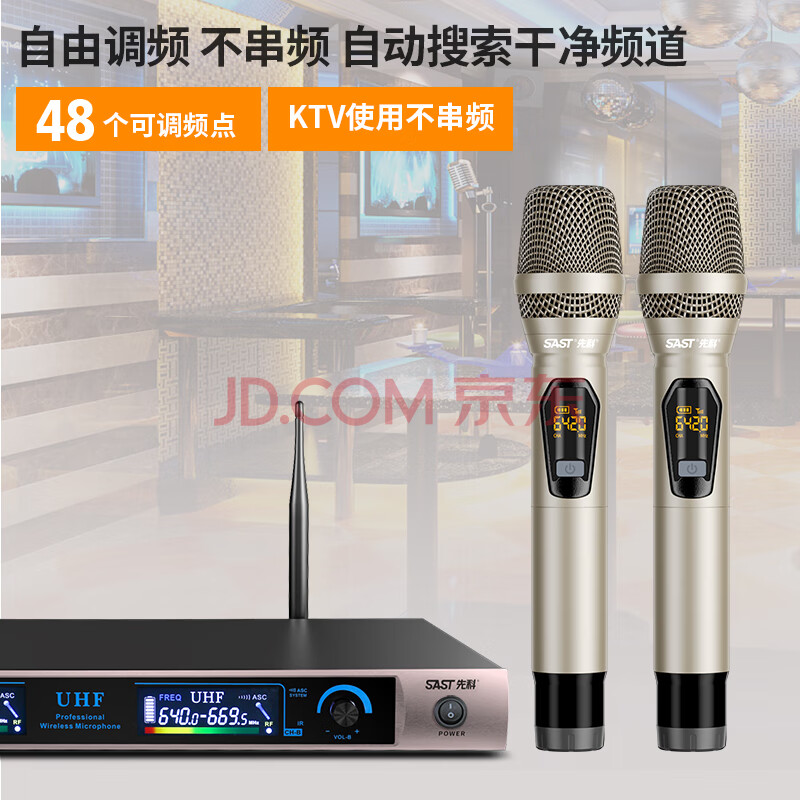 商品相册:先科(SAST)ok-105 手持一拖二无线麦克风U段可调频专业麦克风百米传输演讲直播话筒家庭广播婚庆KTV第