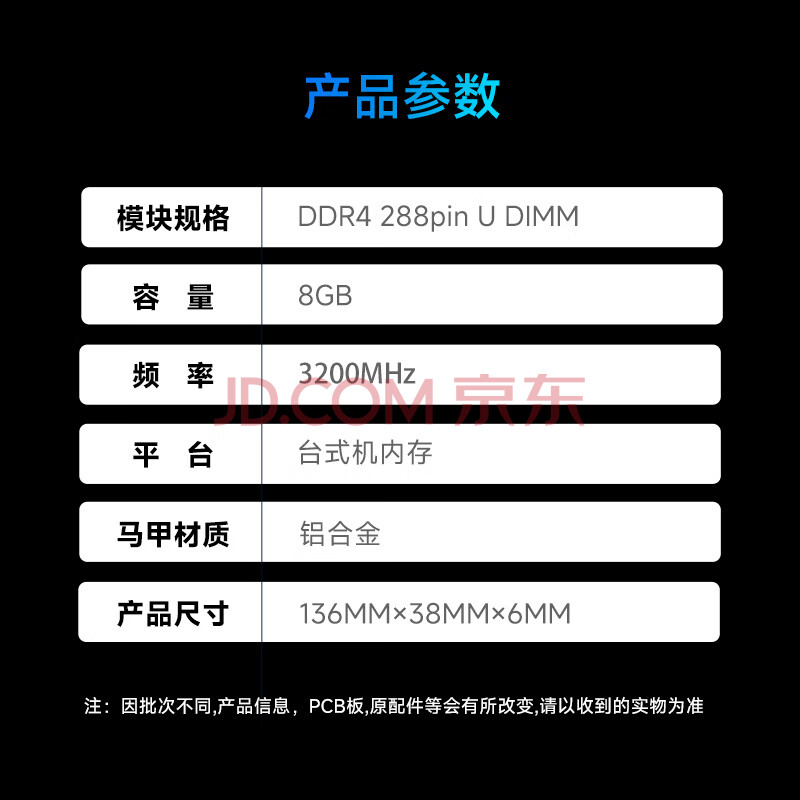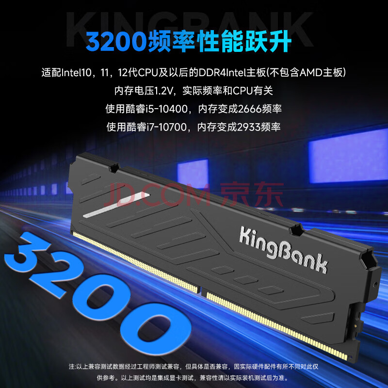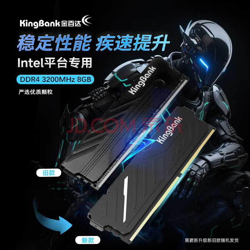 商品相册:金百达(KINGBANK)8GB DDR4 3200 台式机内存条 intel专用条 黑爵第