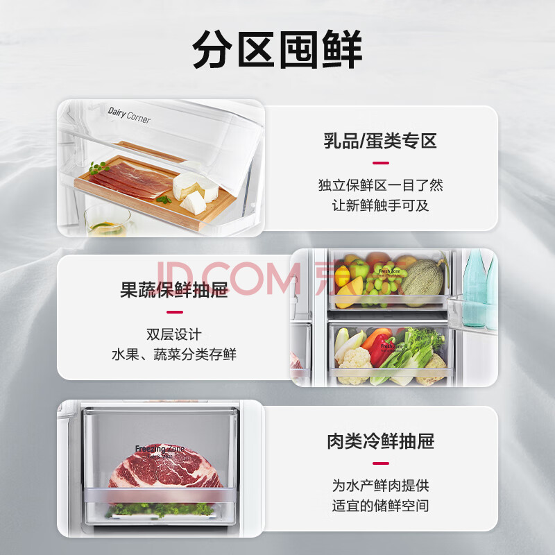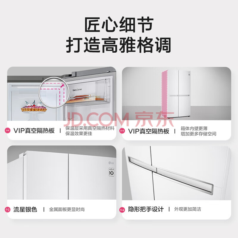 商品相册:LG御冰系列 649L对开门超大容量冰箱多重冷流风冷无霜保鲜冷冻分区珠光白S651SW12第
