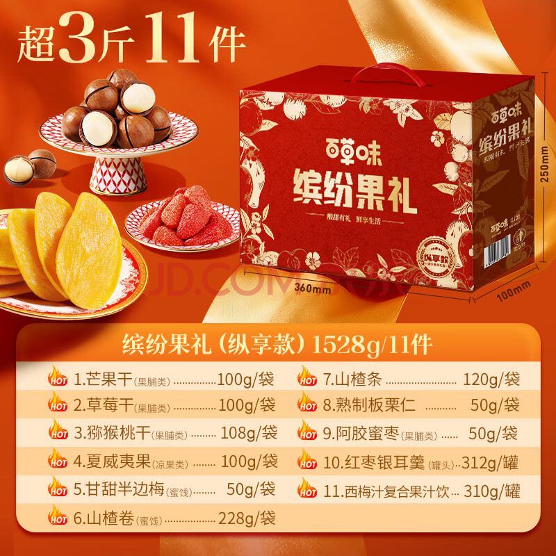 商品相册:百草味坚果果干礼盒1528g 芒果干夏威夷果休闲零食大礼包送礼第