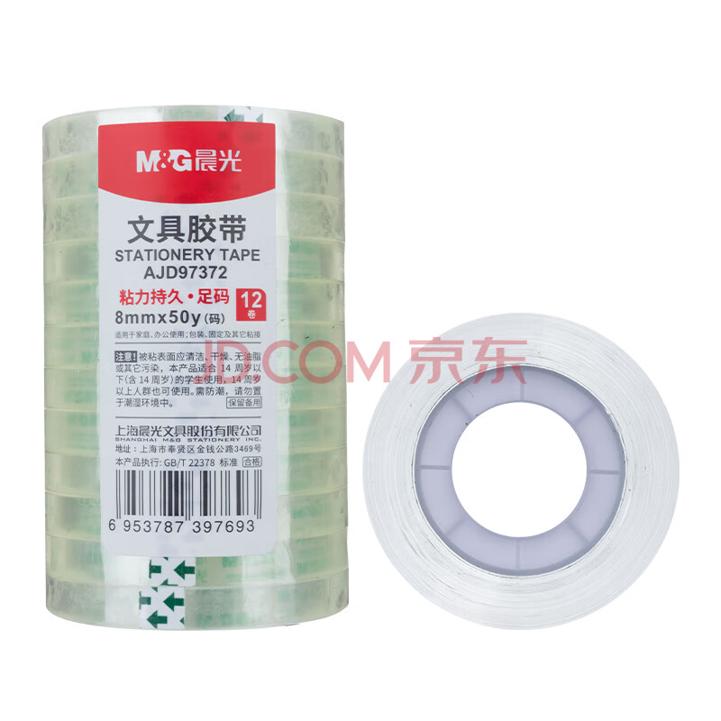 商品相册:晨光(M&G)(M&G)文具透明胶带 高透易撕小胶带 开学必备学生手工胶布8mm*50y(45.7m/卷) 12卷装AJD97372第