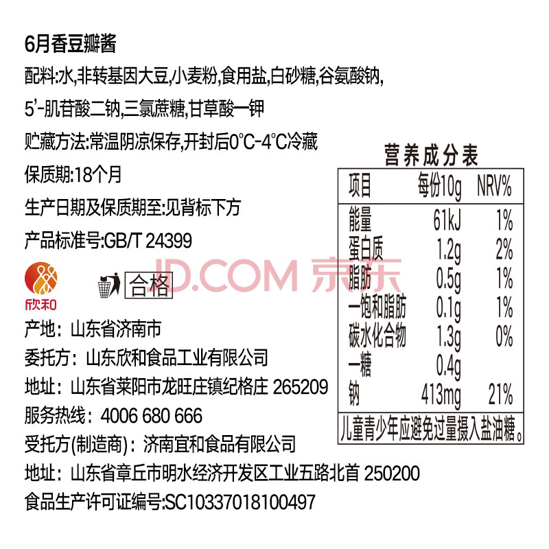 商品相册:葱伴侣六月香原酿豆瓣酱300g 炒蘸调味 欣和出品第