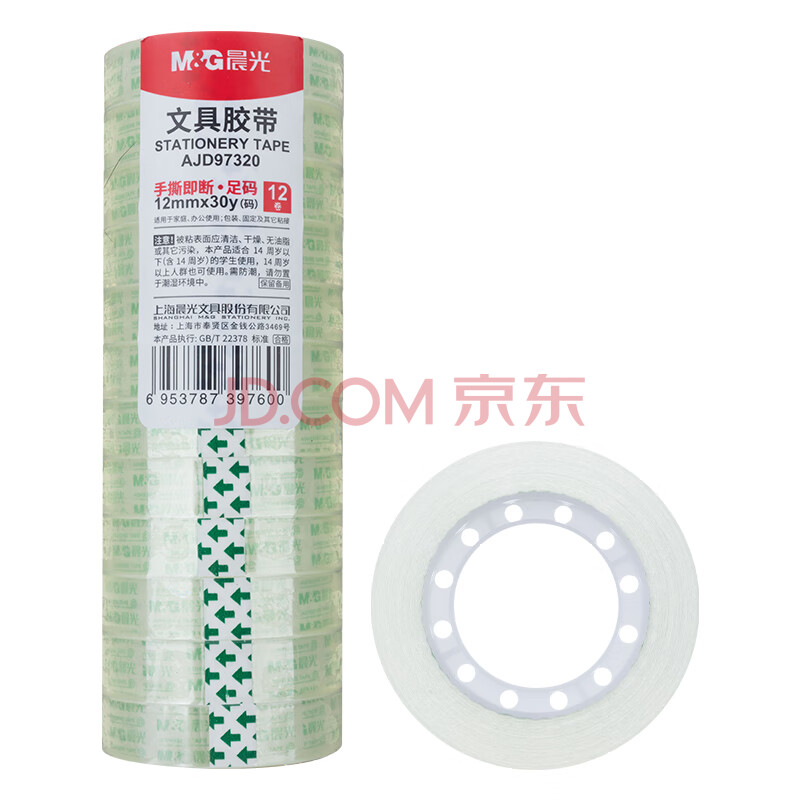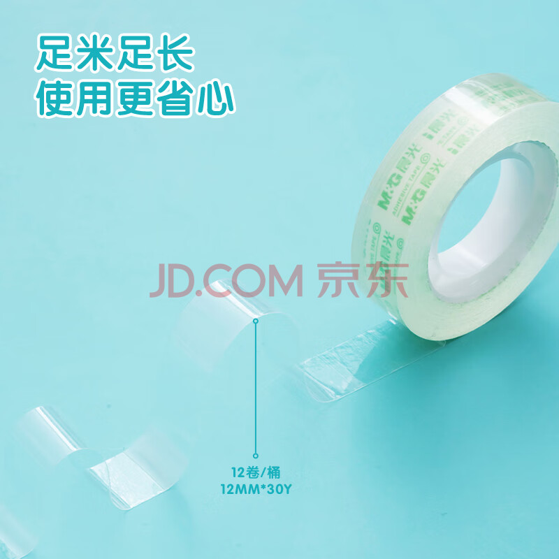 商品相册:晨光(M&G)文具透明胶带 高透易撕小胶带 开学必备用品小学生手工胶布12mm30y(27.42米/卷) 12卷装AJD97320第
